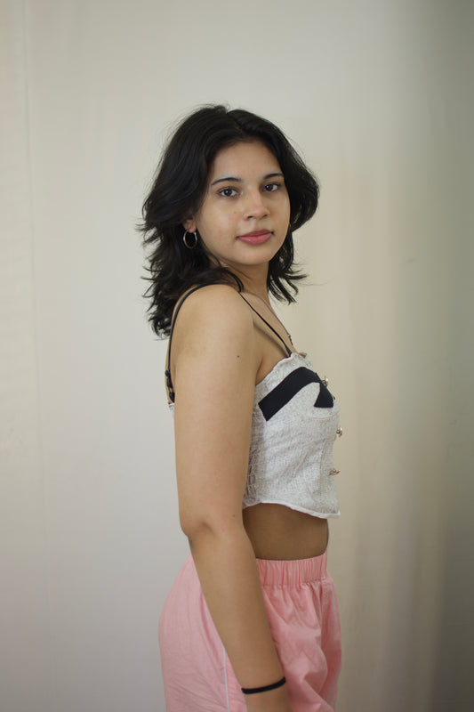 Two-Tone Solid Tie Crop Top – Chic & Bold Statement Piece