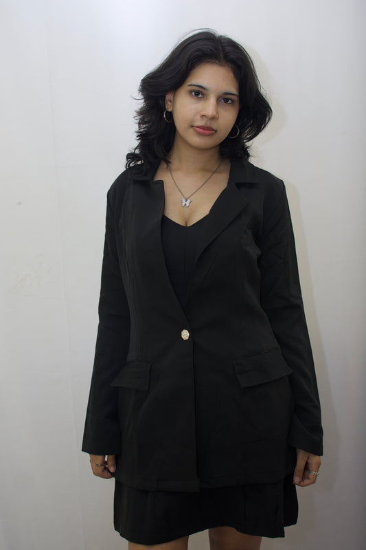 Classic Black Two-Piece Blazer Dress Set – Effortless Elegance
