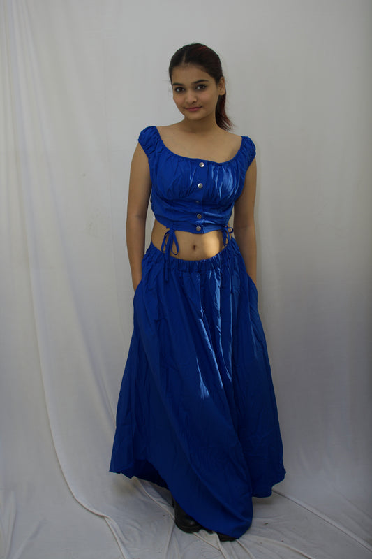 Elegant Boat Neck Crop Top & Maxi Skirt Set - Royal Blue