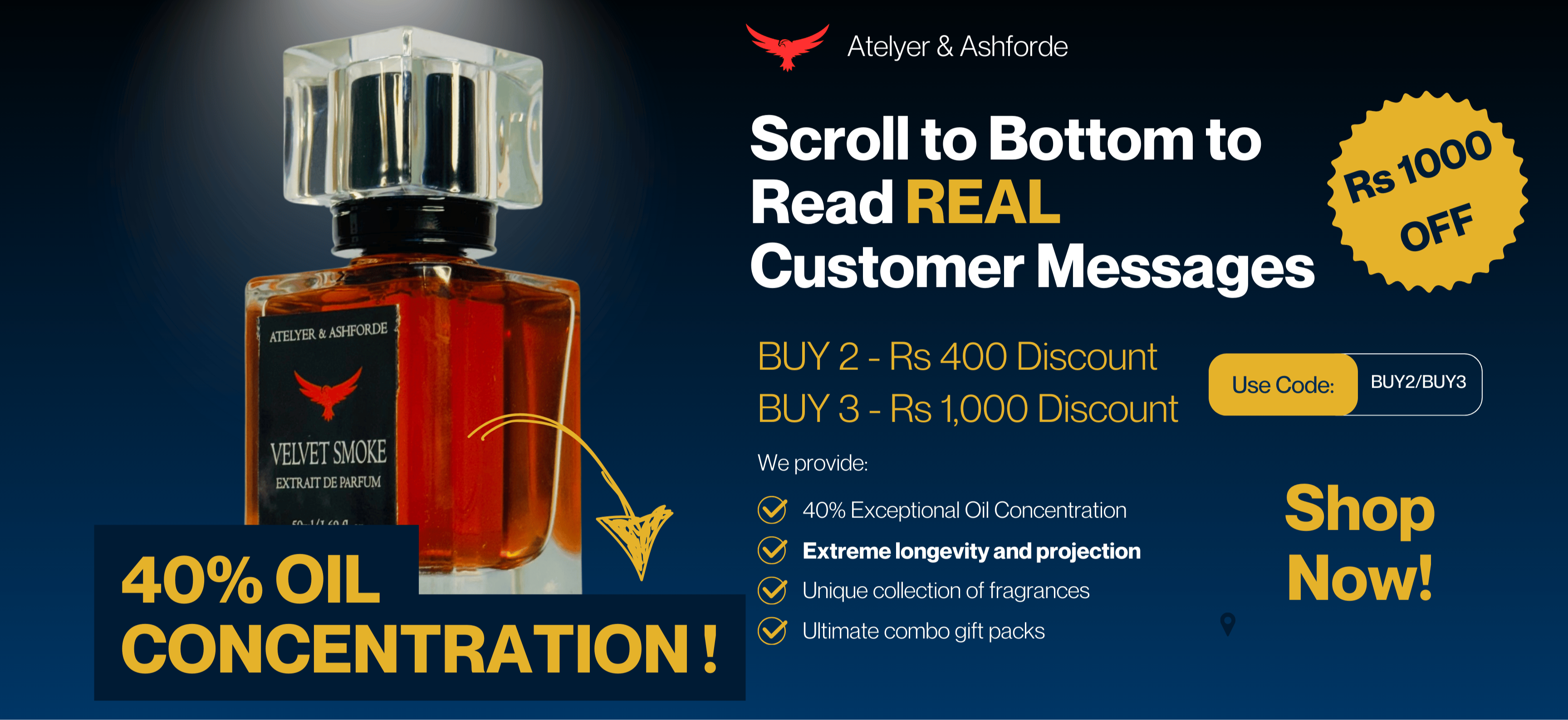 Atelyer & Ashforde offers premium-quality perfumes, skincare, and apparel crafted with meticulous attention to detail. Our perfumes, like 'Mystique,' 'Velvet Smoke,' 'Lustre,' 'Mocha Veil,' and 'Sienna,' are thoughtfully designed with unique, luxurious scents that evoke unforgettable experiences. We prioritize quality, sophistication, and innovation, ensuring our products stand out for their elegance and lasting impression. With Atelyer & Ashforde, you don’t just purchase products—you embrace a lifestyle of luxury and distinction.