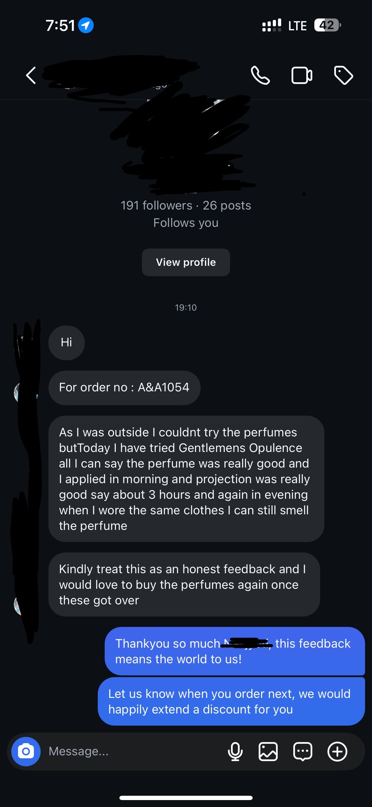 Our perfumes last over 48 hours on your clothes and upto 24 hours on your skin/neck, since they are skin friendly. Because of higher oil concentration of 40% we promise immense longevity and projection.