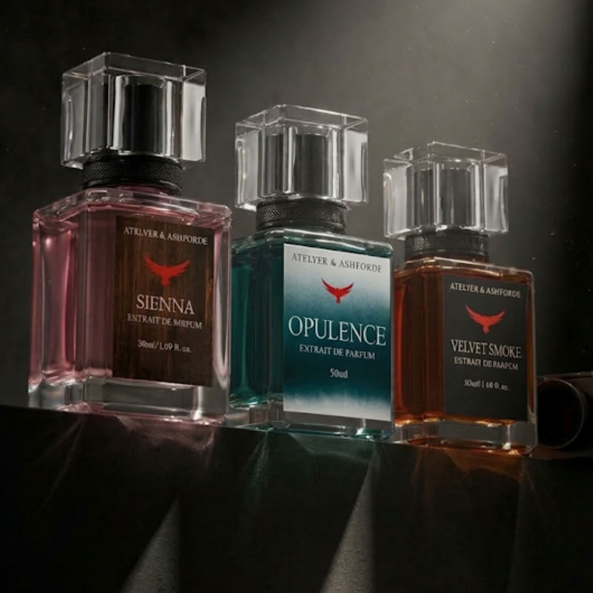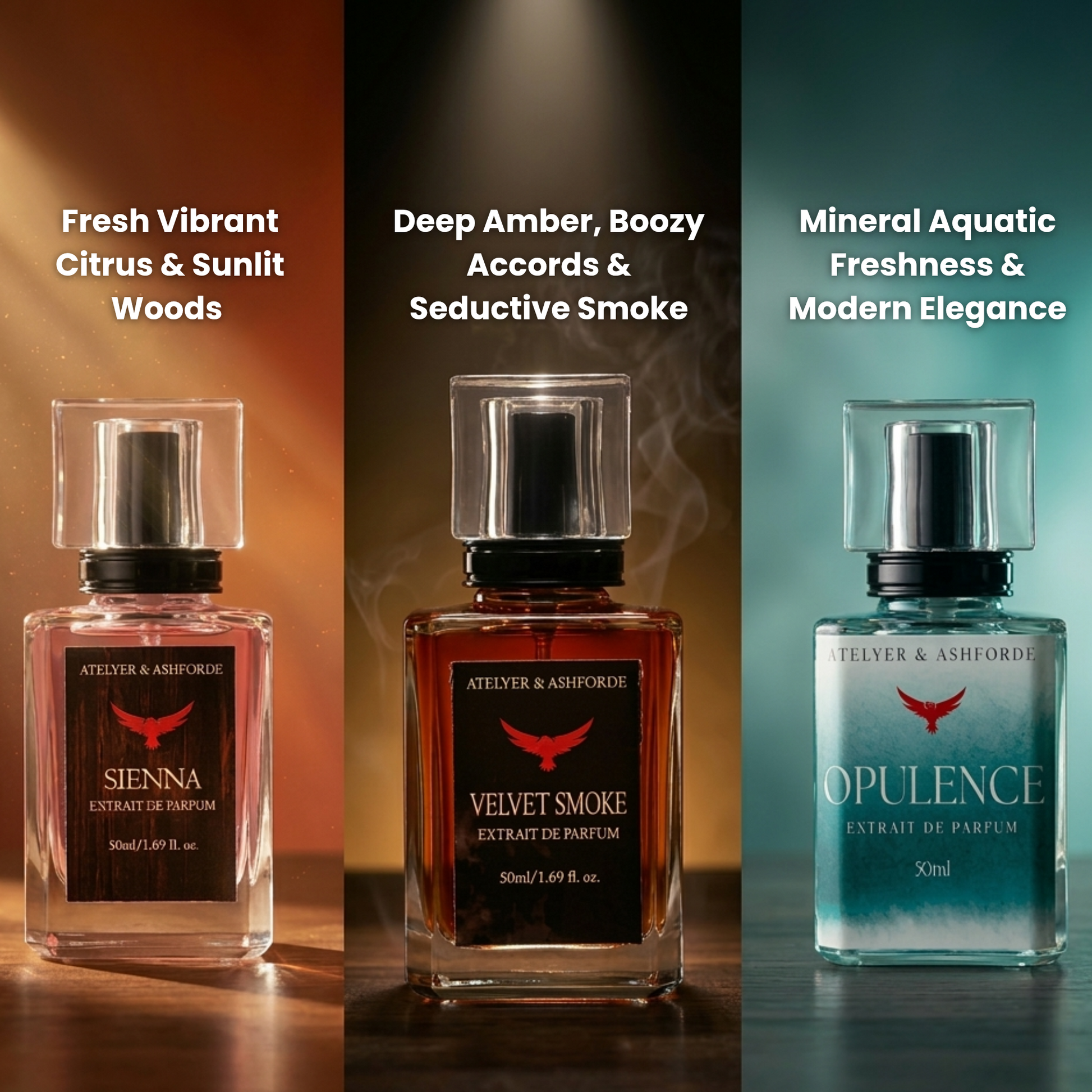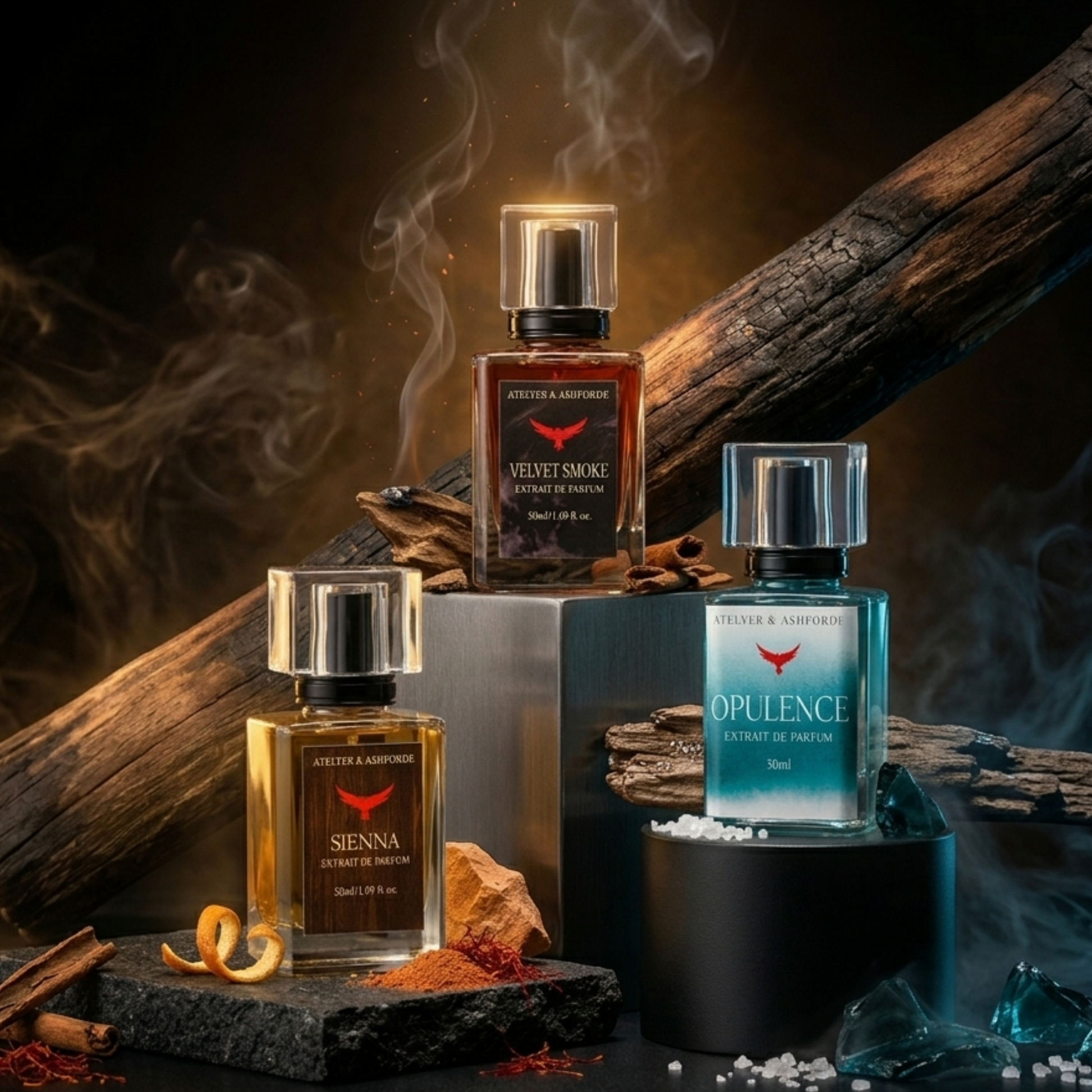 Unleash your inner icon with this distinguished set: Sienna, the suave blend for the bold-hearted; Opulence, a luxurious whisper of sophistication; and Velvet Smoke, the perfect hint of mystery that lingers. Whether you're commanding the boardroom or stealing the spotlight, this trio ensures you're unforgettable—every single time.